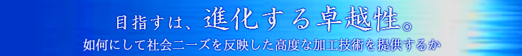 といった製品に於ける様々な動向への対応は当社の使命であります。このような中で、最新鋭設備の導入、ISO9001/14001シリーズ取得は、受注製品の品質向上は勿論のこと、コスト軽減、納期短縮を実現致しました。